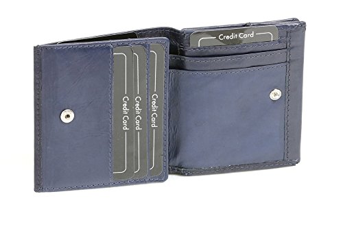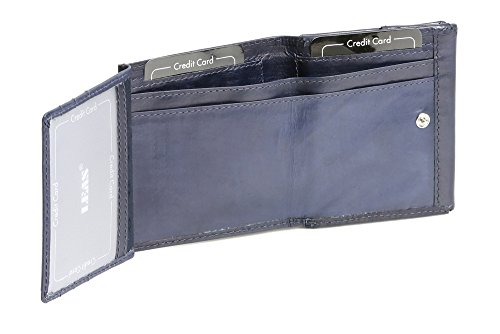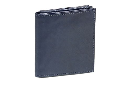 LEAS Mały skórzany portfel w stylu pudełkowym z dużą przegródką na monety z folią zabezpieczającą RFID, prawdziwa skóra, niebieska edycja specjalna ”