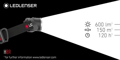 Ledlenser H8R Latarka czołowa LED, ładowany akumulator litowy typu 18650, 600 lumenów, z możliwością ustawiania ostrości, czas pracy do 120 h, tylne ś