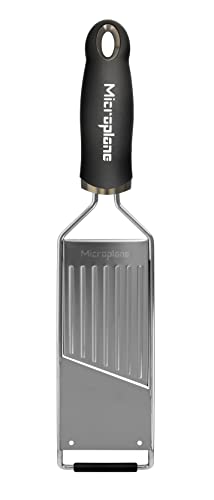 Einzelheiten: Produktbeschreibung Der Gourmet-Hobel ist ein handgehaltenes kulinarisches Werkzeug, das schnell, leicht und bequem verschiedene Lebensmittel präzise in exakte Scheiben von 2 mm Breite schneidet. Mit diesem Werkzeug erübrigt sich das Erlernen von Messertechniken für Rezepte, in denen dünne Scheiben von Gurken, Rettich, Zucchini, Kartoffeln, Zwiebeln, Pepperoni, Äpfeln und anderen Zutaten gefragt sind – der Gourmet-Hobel liefert hervorragende gleichmäßige Scheiben mit minimalem Aufwand._ Der Hobel kombiniert die Funktionalität einer größeren Mandoline mit dem kompakten Design eines in der Hand gehaltenen Gemüsehobels und ist somit sehr leicht zu bedienen und zu kontrollieren bei der Herstellung von Salaten, Pizzabelag, Cocktailgarnierung, gesundem aromatisiertem Wasser, Gratins, Desserts, Parfaits und vielem mehr. In Schwarz erhältlich. Markenbeschreibung „Microplane Aus dem Werkzeugkasten direkt in die Küche, so begann diese Erfolgsgeschichte. Microplane gehört zu dem familiengeführten Unternehmen Grace Manufacturing aus Arkansas USA, das seit fast 40 Jahren Erfahrung im Bereich der photo-chemischen Produktion gesammelt hat. Ursprünglich wurde die Microplane Reibe für Holzarbeiten entworfen. Zur großen Verwunderung von Richard Grace, einem der Firmengründer, wurde seine Reibe in großer Zahl von Profi- und Hobbyköchen gekauft als Zitrus- und Hartkäsereibe. Die Entdeckung, dass die winzigen rasiermesserscharfen Klingen der Holzraspel auch Lebensmittel fein reiben und schneiden können, anstatt sie zu zerfetzen, legte den Grundstein für den Erfolg der Microplane Küchenreiben. Heute setzt das Unternehmen einen neuen Standard bei der Entwicklung und Funktionalität von Küchenreiben. Mit einem aufwendigen, besonderen Herstellungsverfahren produziert Microplane langlebige und extrem scharfe Schneidekanten, die mühelos durch jedes Lebensmittel gleiten. Lassen Sie sich von diesem besonderen Küchenwerkzeug überzeugen.”