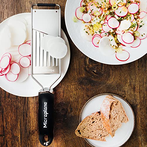 Microplane Profi Gemüsehobel für Kartoffel, Karotte, Gurke, Zucchini und Rote Bete in Schwarz mit Edelstahlklinge