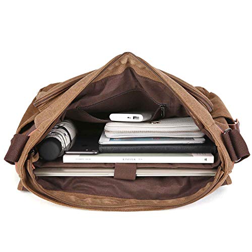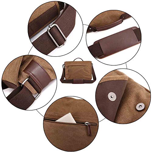 Neuleben wodoszczelna torba na laptopa o przekątnej ekranu 15,6 cala, w stylu vintage, torba na ramię, z płótna, ze skóry, męska, z uchwytem, z regulowanym paskiem na ramię, szary, Rozmiar uniwersalny, torba na ramię