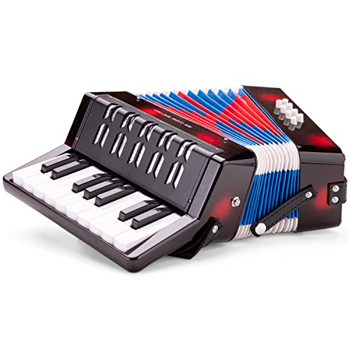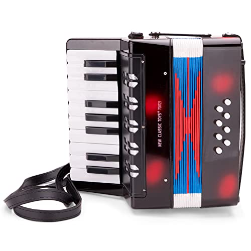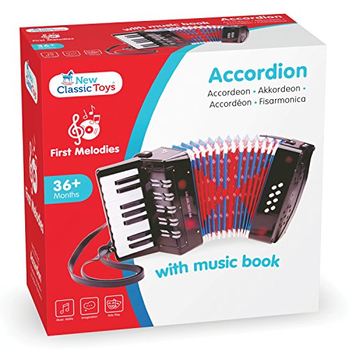 New Classic Toys – 10057 – Musikinstrument – Großes Akkordeon mit Musikbuch – Schwarz/Rot