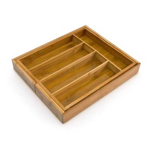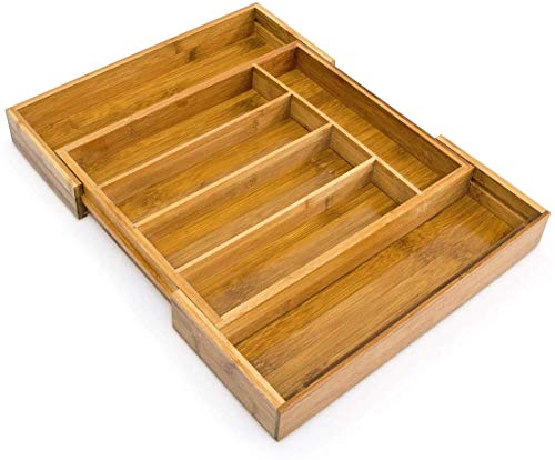Relaxdays Bambusowa taca na sztućce, 5 – 7 przegródek, regulowana taca