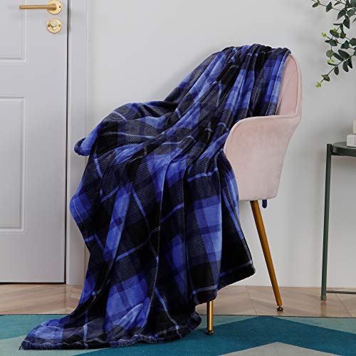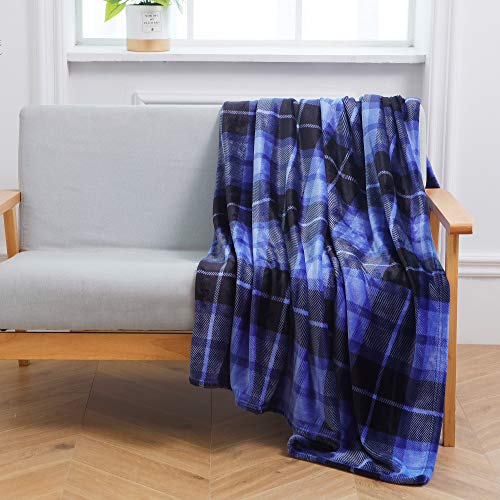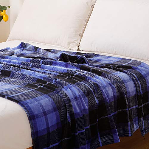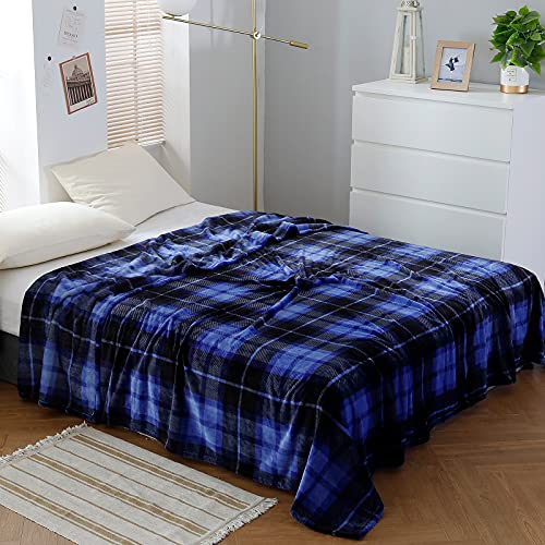 SOCHOW Koc polarowy na kanapę, narzuta na łóżko, w kratkę, całoroczny 150 x 200 cm, niebieski