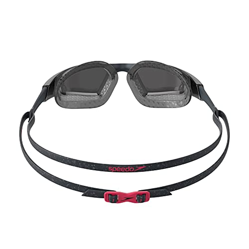 Speedo Okulary pływackie unisex Aquapulse Pro, przeciwmgielne, przeciwmgielne, zapobiegające wyciekom, szary (Oxid Grey/Phoenix Red/Smoke), jeden rozmiar