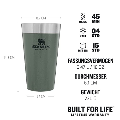 Stanley Adventure Vacuum 0,47 Liter, BPA-frei |Stapelbare | Doppelwandiger, vakuumisolierter Pint-Becher | Spülmaschinenfest, Hammertone Green, 1 Stück (1er Pack)