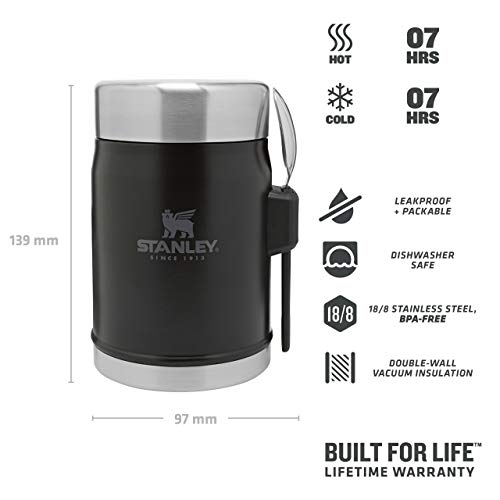 Stanley Classic Legendary Thermobehälter für Essen mit Spork 400 ml Matte Black – Edelstahl Warmhaltebehälter Essen – BPA-frei – Hält 7 Stunden Heiß oder Kalt – Spülmaschinenfest