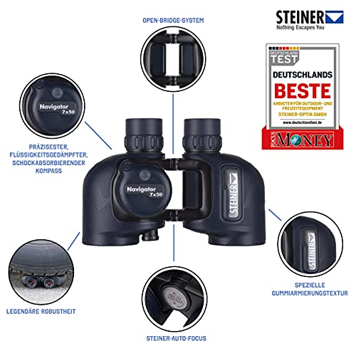 STEINER lornetka morska Navigator 7x50c – kompas ze stabilizacją HD, niemiecka optyka, otwarty mostek, wodoodporność do 5 m, stworzona dla miłośników sportów wodnych i żeglarzy hobbystów